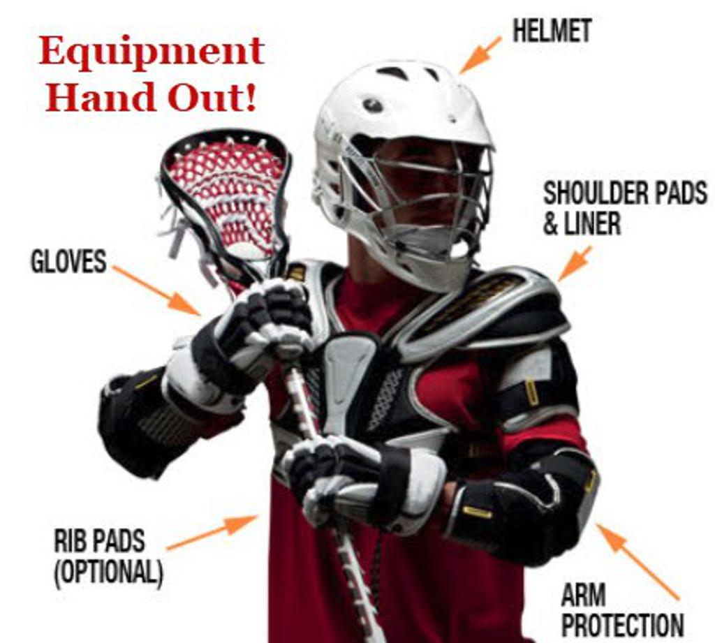 Boys Lacrosse players must have appropriate equipment including helmet, shoulder pads, arm pads gloves, lacrosse stick, cleats, athletic cup & mouth guard.